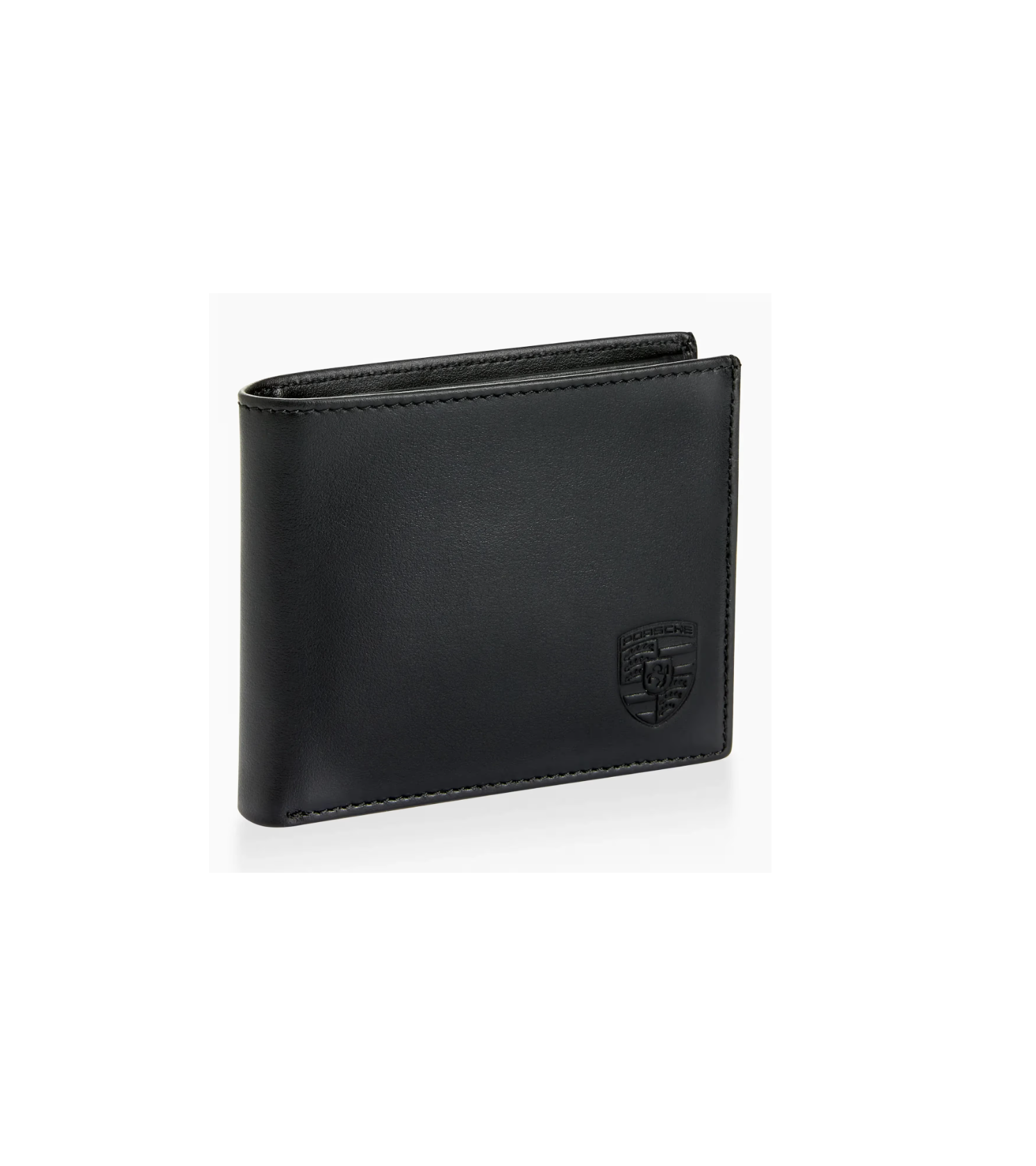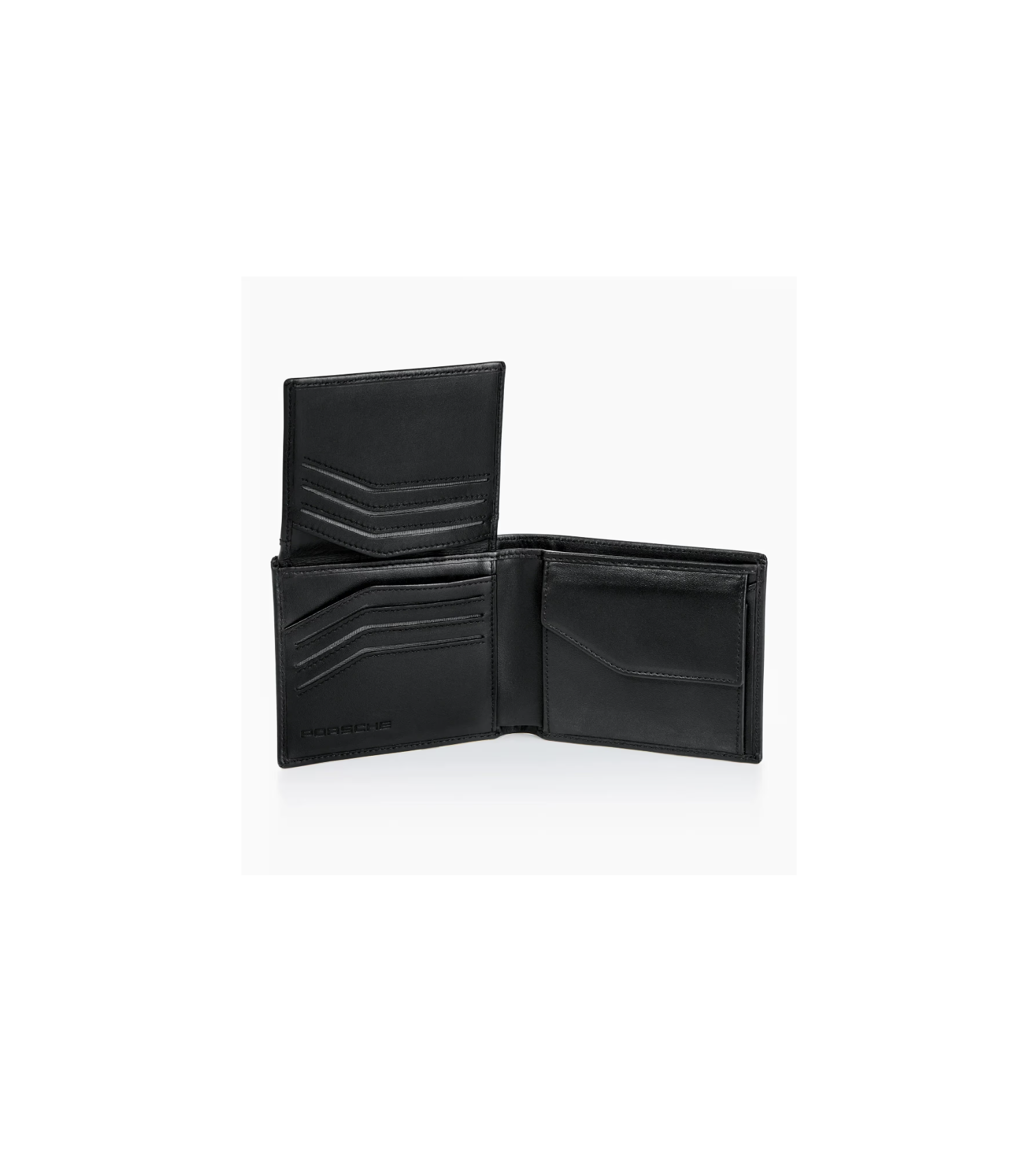 Kiváló minőségű marhabőrből készült pénztárca dombornyomott Porsche címerrel. Négy kártyatartó rekesszel, egy bankjegy- és aprópénz-rekesszel, valamint egy hálós zsebbel.