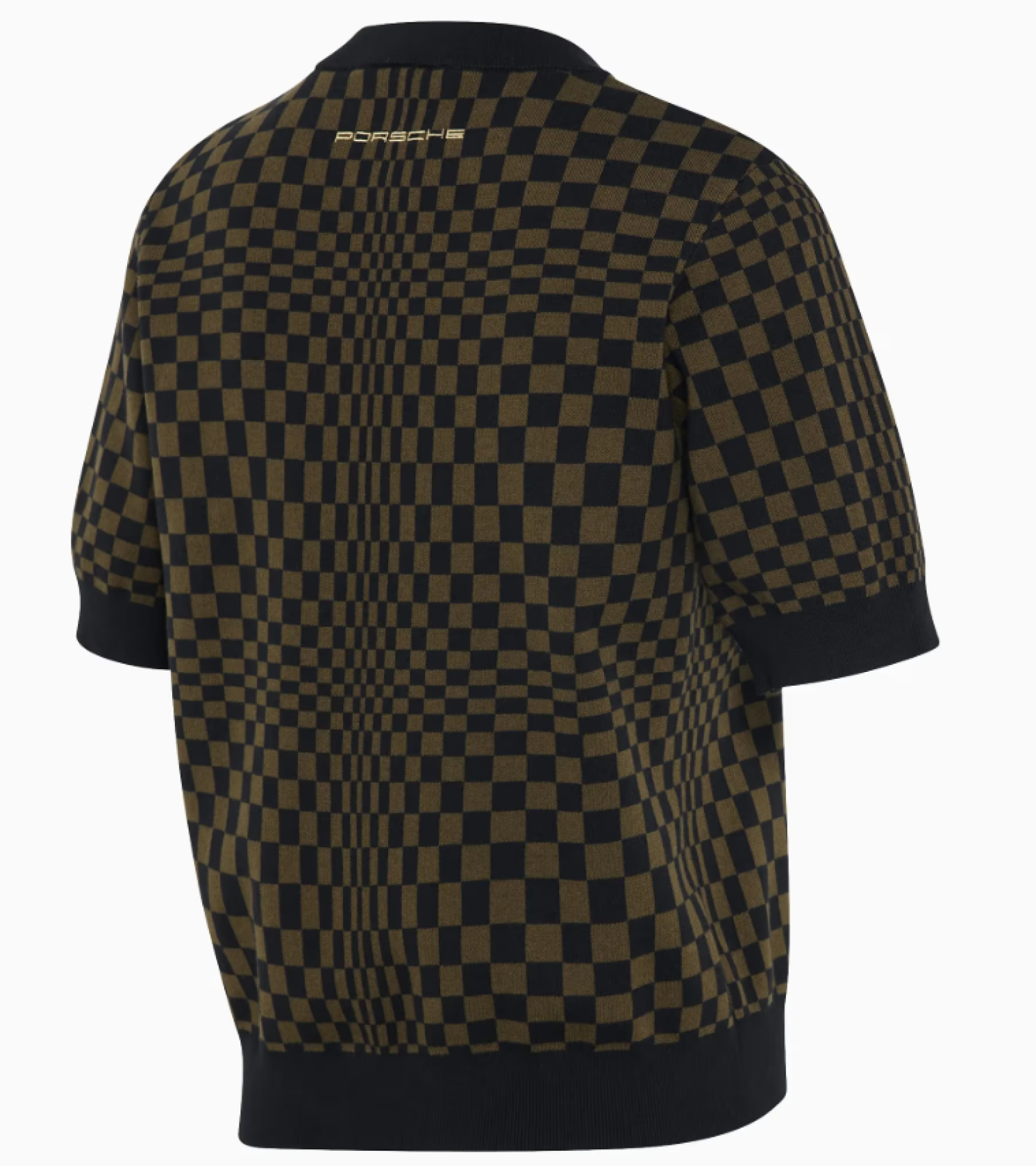 Tisztelgés az ikonikus dizájn és a sportos elegancia előtt – a legendás Pasha minta kölcsönöz a Porsche 911 Spirit 70 kollekciónak jellegzetes megjelenést. Ez a női jacquard pólóing lenyűgöző Pasha mintájával és laza, dobozos szabásával, enyhén rövidített szabással. A bordázott mandzsetta és szegély kényelmes viseletet biztosít, míg a kerek nyakkivágás kiemeli az ing klasszikus megjelenését. A gallér alatt hátulján található hímzett, arany Porsche felirat, valamint a bal ujjon található vászonszalaggal és arany Heritage szegeccsel ellátott "Icons of Cool" logó különleges kiegészítője az ingnek.