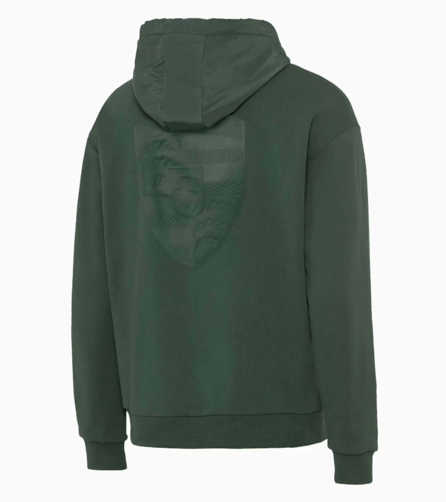 Minimalizmus találkozik az eleganciával: Az Essential kollekció puritán dizájnnal rendelkezik, amely a Porsche szellemiségét a legtisztább formájában ragadja meg. Ez az unisex pamut kapucnis pulóver kenguruzsebbel és nejlon anyagból készült kapucnival rendelkezik. Vizuálisan lenyűgöző a bal mellkason található Porsche logóval, míg a hátulján található nagyméretű Porsche címer applikáció igazi különlegességgé varázsolja.