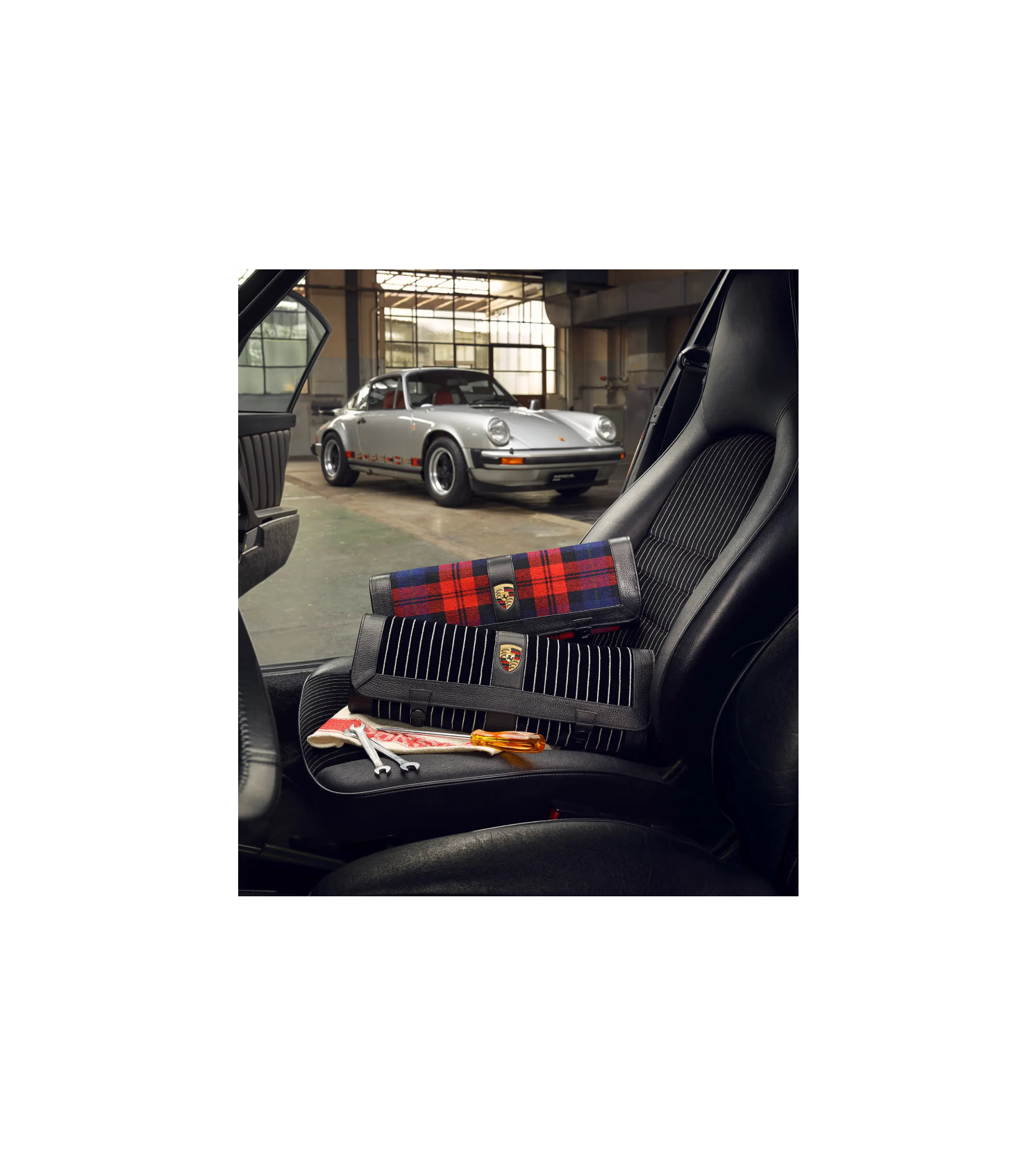 A Porsche Classic a szerszámtáska újrakiadásának látványos, az 1970-es évek végi stílusát idéző megjelenést kölcsönzött. És míg az eredeti csak műbőrből készült, a szerszámtáska most fekete valódi bőrből és piros kockás szövetből készült.