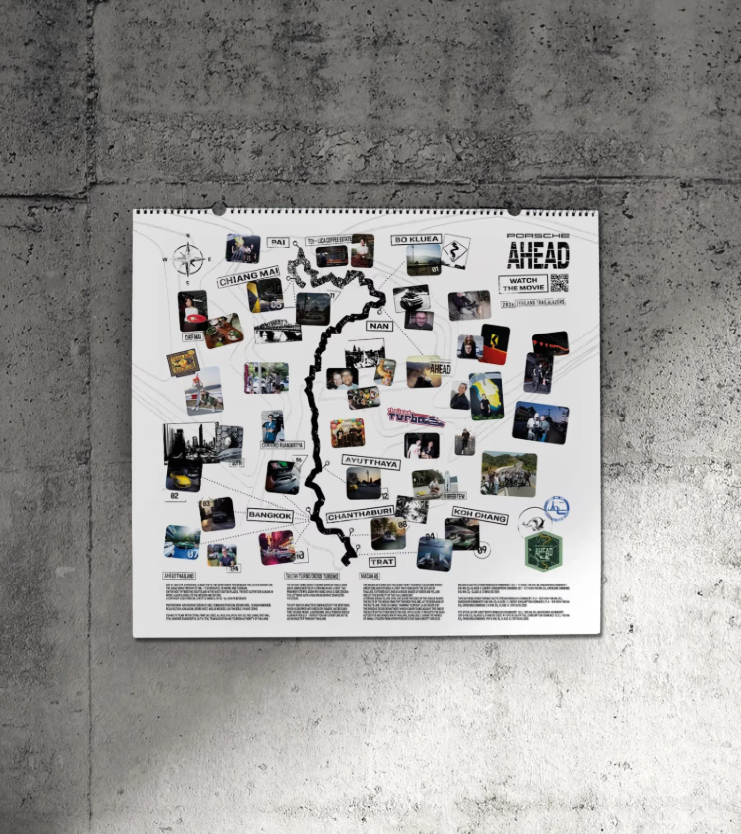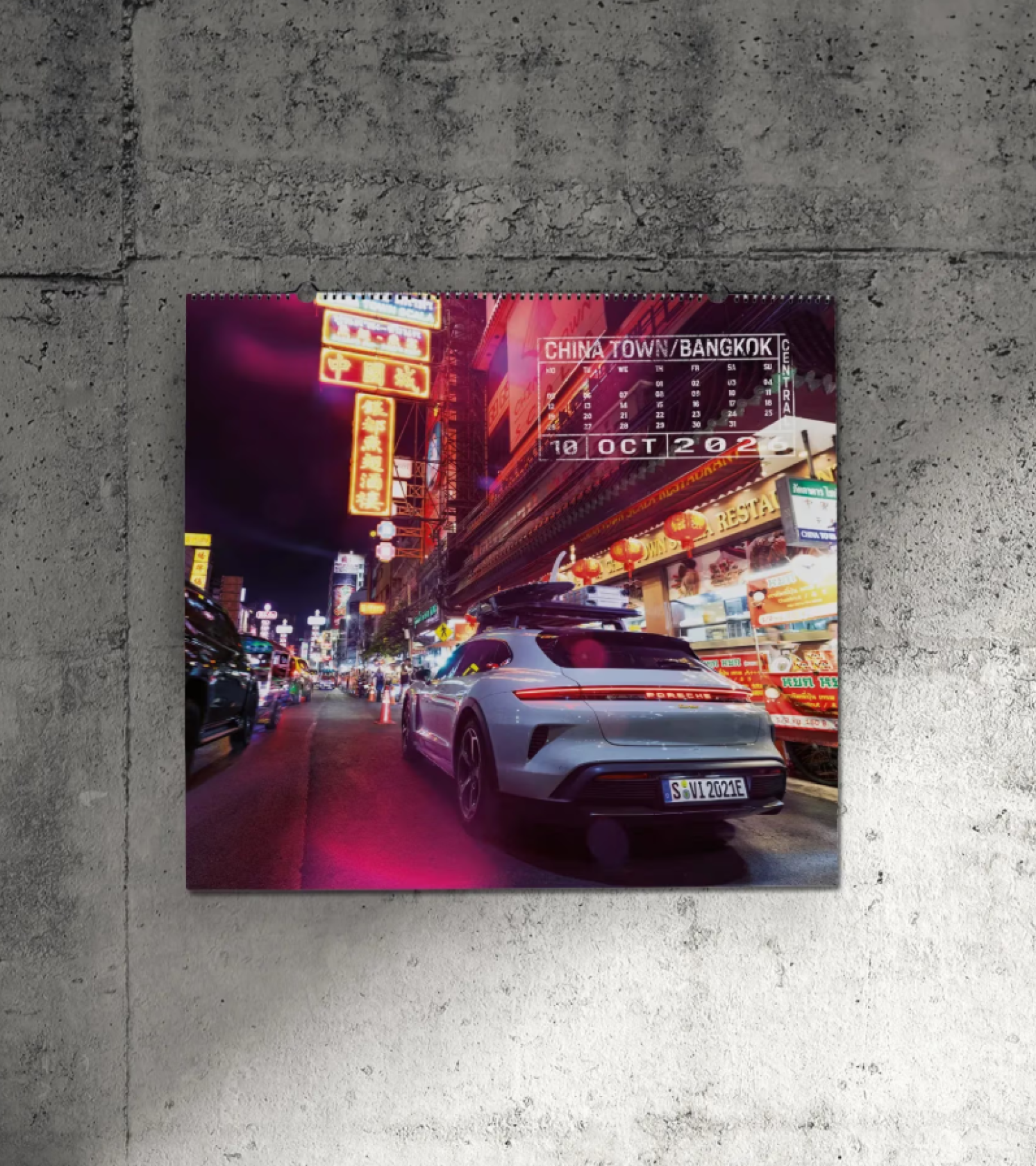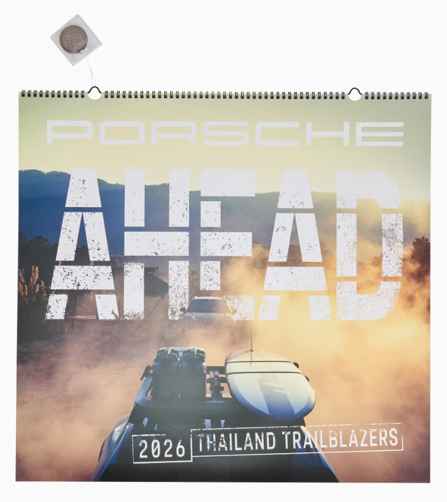 Porsche falinaptár „Thailand Trailblazers” 2026-os évre thaiföldi motívumokkal.