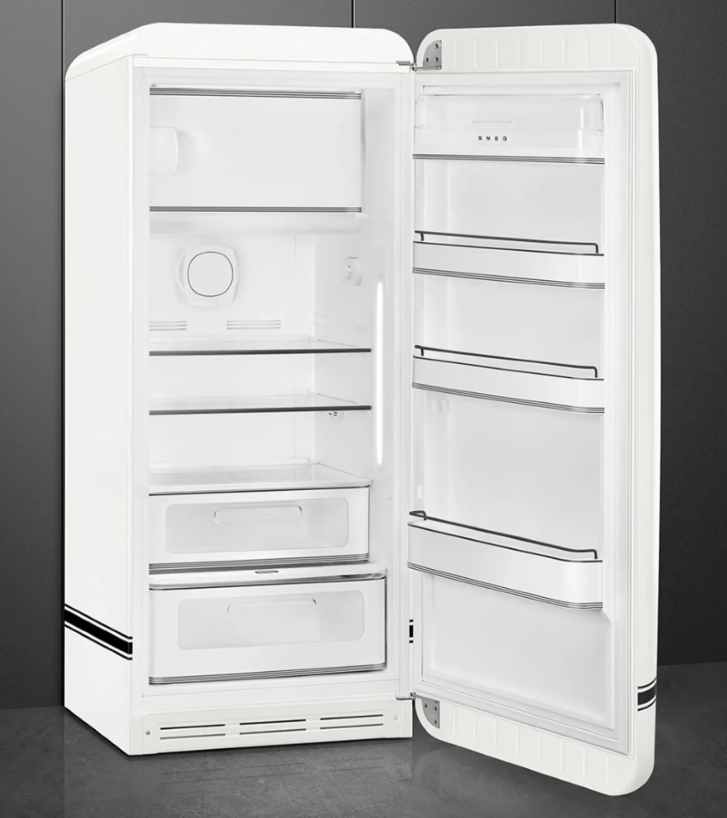 Egy meghatározó karakterű dizájntárgy – letisztult formában, precíz funkcióban. Az ikonikus Smeg hűtőszekrényt jellegzetes Porsche elemekkel értelmezték újra: A fogantyú kialakítását a Porsche 911 GT3 RS ihlette, és pontosan a hűtőszekrény arányaihoz igazították.