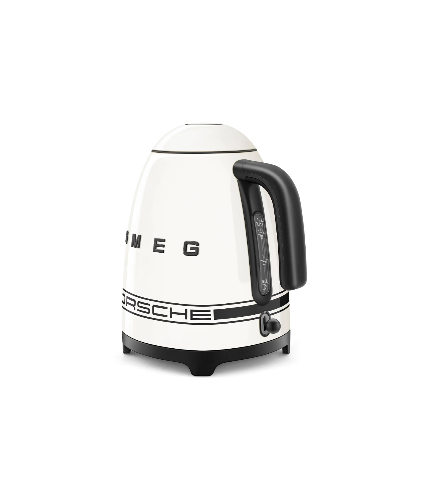 Egy konyhai készülék meghatározó karakterrel – letisztult formában, precíz funkcióval. A Smeg ikonikus 1950-es évekbeli megjelenése ötvöződik a Porsche puritán formatervezési nyelvezetével: matt fekete díszítés a fogantyún, az alapon és a kifolyón, valamint a jellegzetes Porsche csík a házon.