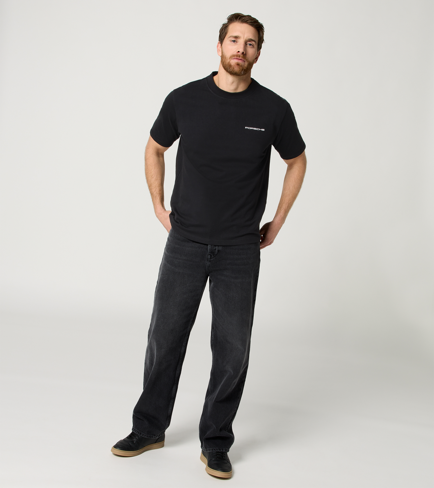 Normál fazon, kissé túlméretezett.Kerek nyakkivágás.Porsche márkajelzés az elején.Szembetűnő nyomtatás a hátoldalon, amely egy ikonikus 90-es évekbeli Porsche plakátra emlékeztet.Tökéletesen illik a kollekció színes sapkáihoz.