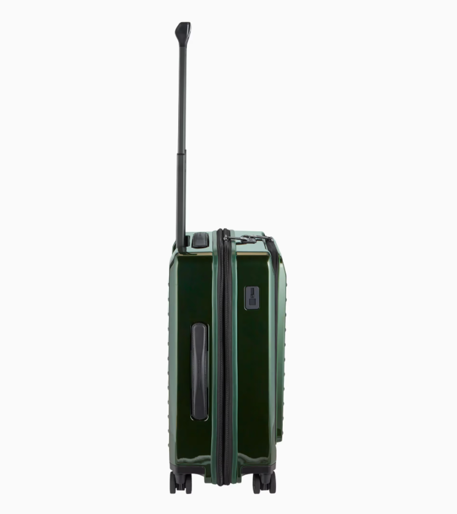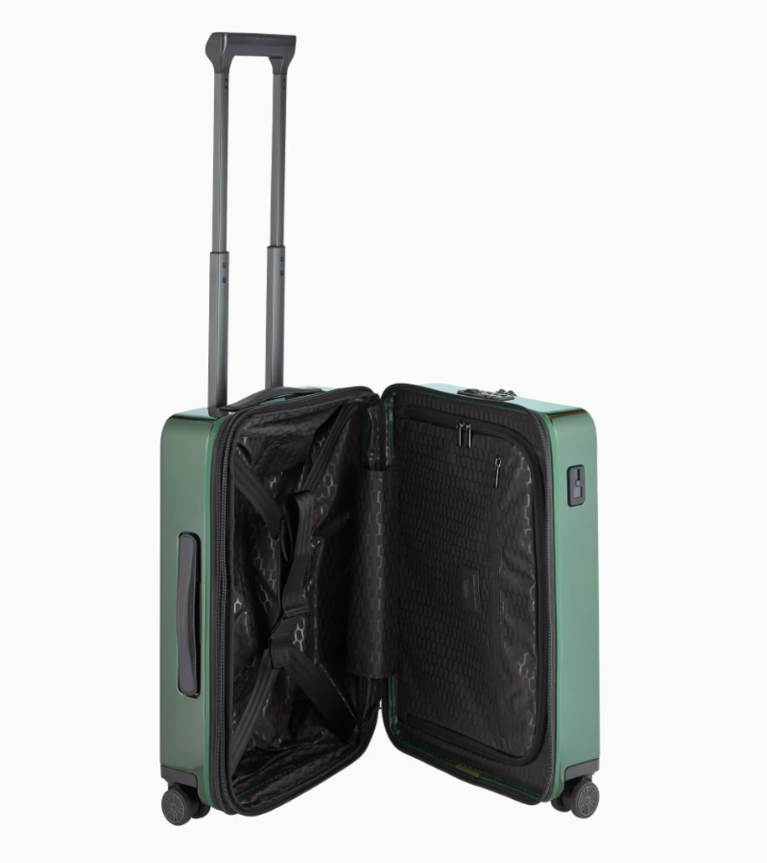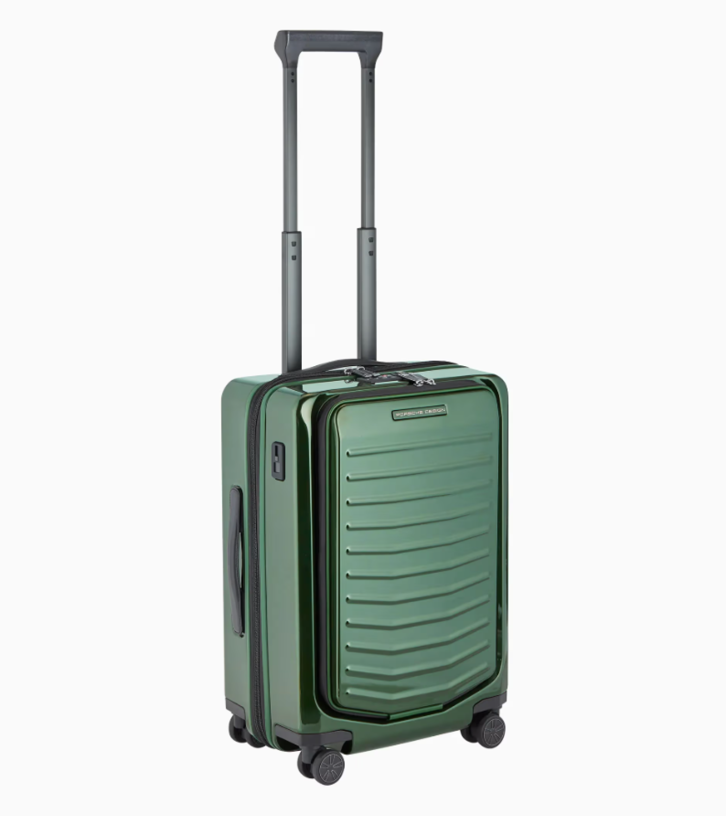 Ultrakönnyű és a Porsche 911 színei ihlették: a Roadster keménykazettás kollekció. A Studio FA Porsche által fejlesztett, polikarbonátból készült bőröndsorozat a forma, a funkció és a dizájn tökéletes ötvözete. A kézipoggyász méretű Porsche Design Roadster keménykazettás üzleti kocsi S lenyűgözi okos konstrukciójával, mindössze 3,9 kg-os súlyával, dinamikus megjelenésével, szegélyezett kialakításával és a valódi bőrből készült Porsche címerével. A tágas elülső zseb üzleti felszereléssel és USB-csatlakozóval helyet biztosít egy jegyzetfüzetnek, dokumentumoknak és extráknak, amelyekhez gyorsan hozzáférhet a repülőtéren. A simán futó, golyóscsapágyas kerekek és az ergonomikus markolattal ellátott, több magasságban állítható fogantyúrendszer tökéletes teljesítményt biztosít. A lekerekített éleknek köszönhetően különösen könnyű a táskákat a fogantyúra helyezni és kivenni. Az osztott belső tér bármikor spontán bővíthető, és az elülső fedélhez hasonlóan dupla TSA zár és lopásgátló cipzár védi.