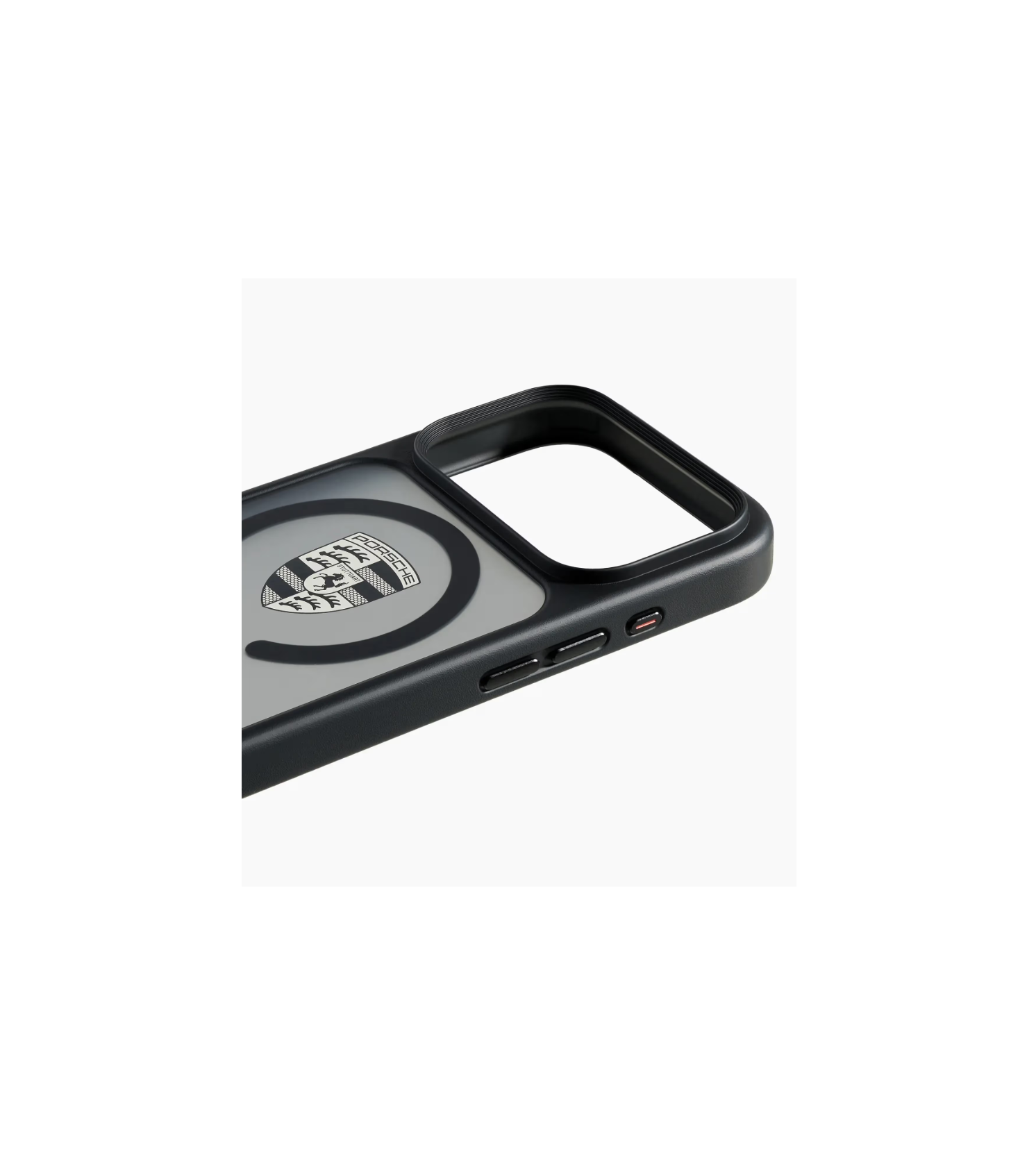 Porsche Performance – a zsebedbe: Ez a prémium iPhone® 17 Pro tok időtlen dizájnnal rendelkezik, és az ikonikus Porsche címer teszi teljessé. Az alumínium kamerakeret stílusos megjelenést kölcsönöz és extra védelmet nyújt. A MagSafe kompatibilitásnak köszönhetően a vezeték nélküli töltés mindig lehetséges. Különlegesség: A tok személyre szabható a mellékelt Porsche járműlogó matricákkal