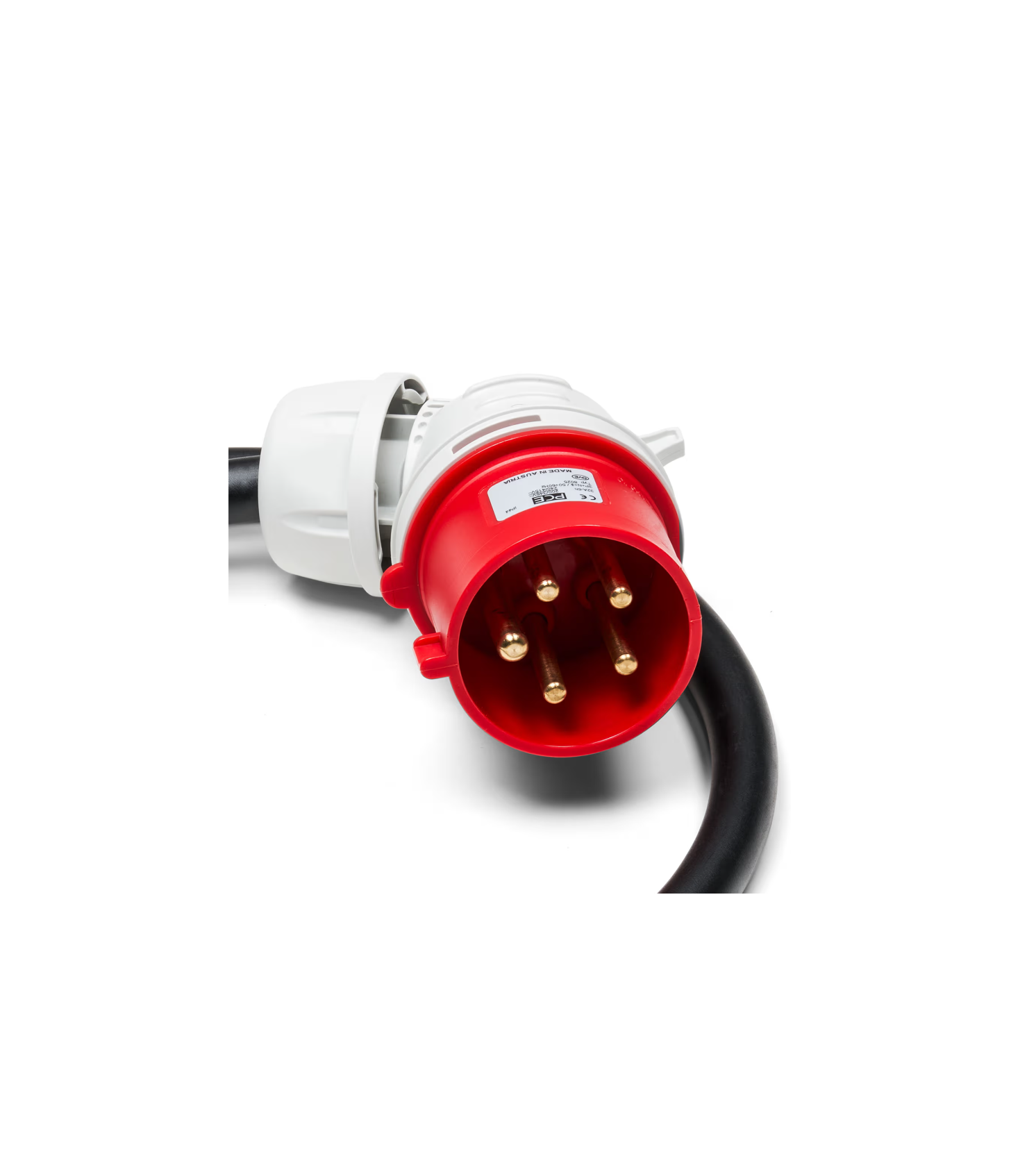 CEE 32A háromfázisú, ipari/nagyfeszültségű aljzathoz való töltőkábel, akár 22 kW-ig, 1 m hosszúsággal. Ez a termék kompatibilis minden elektromos és plug-in hybrid járművel.